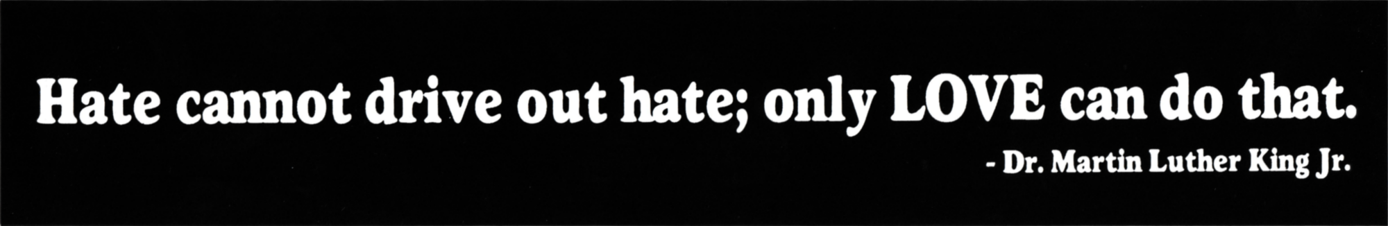 | 8.5" x 1.38" One Color Sticker | Hate cannot drive out hate; only LOVE can do that. | $1.49 | 1-STK-21050 | ||