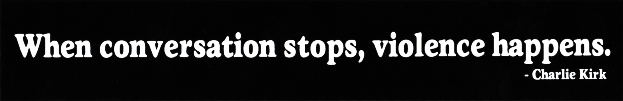 | 8.5" x 1.38" One Color Sticker | KIRK, CHARLIE | When conversation stops - violence happens. | $1.49 | 1-STK-21051 | |