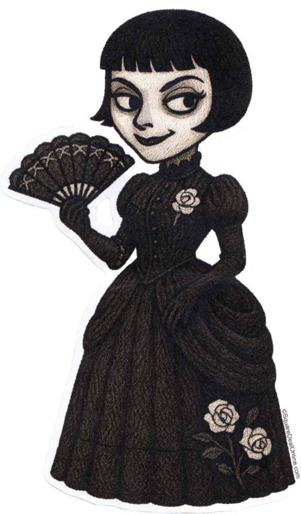| 2.5" x 4.5" Die Cut Sticker | Gothic Lenore with Fan | $2.99 | 1-DCD-10447 | ||