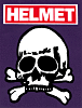HELMET - Red and White Helmet Logo, White Skull, On Purple Background