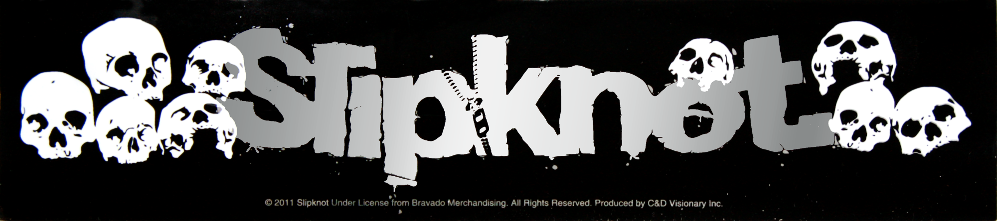 | 9.5" x 2.125" Foil Sticker | SLIPKNOT | Shiny Silver Logo with Skulls | $2.99 | 1-FBS-15884 | |