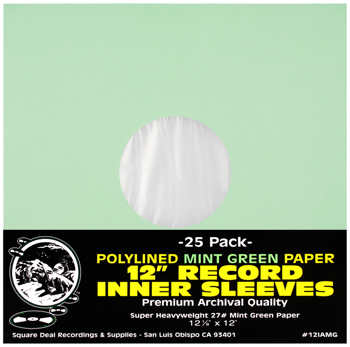 12" Record Inner Sleeves - Super Heavyweight Colored 27# Polylined Paper - with Hole - 12-1/8" x 12" - Mint Green