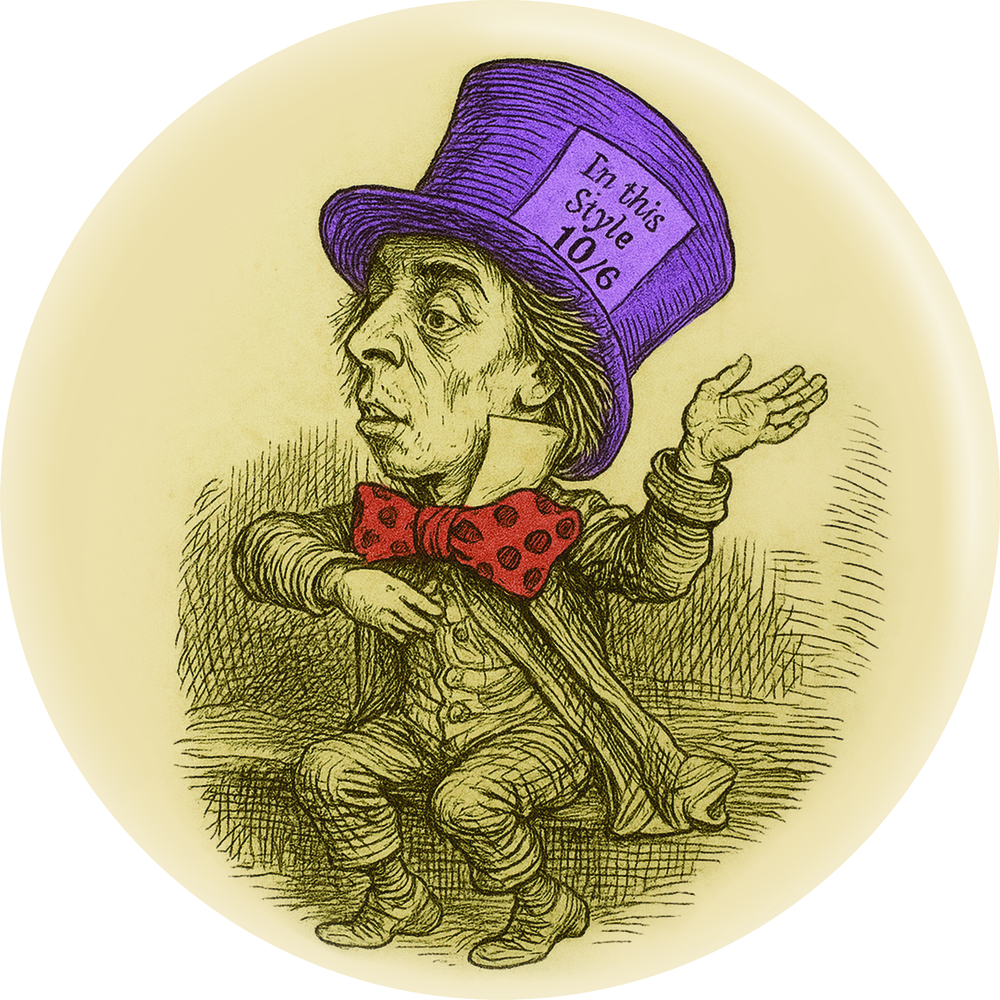 | 1-1/2" Button | ALICE'S ADVENTURES IN WONDERLAND | Mad Hatter | $1.25 | 1-RDB-7894 | |