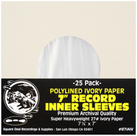 ![]() | 7" Record Inner Sleeves - Super Heavyweight Colored 27# Polylined Paper - with Hole - 7-1/8" x 7" - Ivory | $0.17 - $0.40 | 2-07IAIV |
