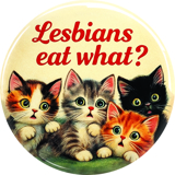 | 1-1/4" Button | EVERYTHING ELSE - Funny, Humor, Slogans, Weird Stuff & Misc. Random Goodness! | Lesbians Eat What? Cats | $1.50 | 1-RDB-26018 | |