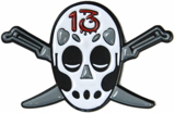 | 1.25" x 0.875" Enamel Pin | Hockey Goalie Mask / 13 / Knives | $5.99 | 1-ENP-4543 | ||
