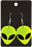 | 1.25" x 2.25" Jewelry | ALIENS, MISC. | Green Alien Earrings | $5.98 | 1-EAR-61059 | |