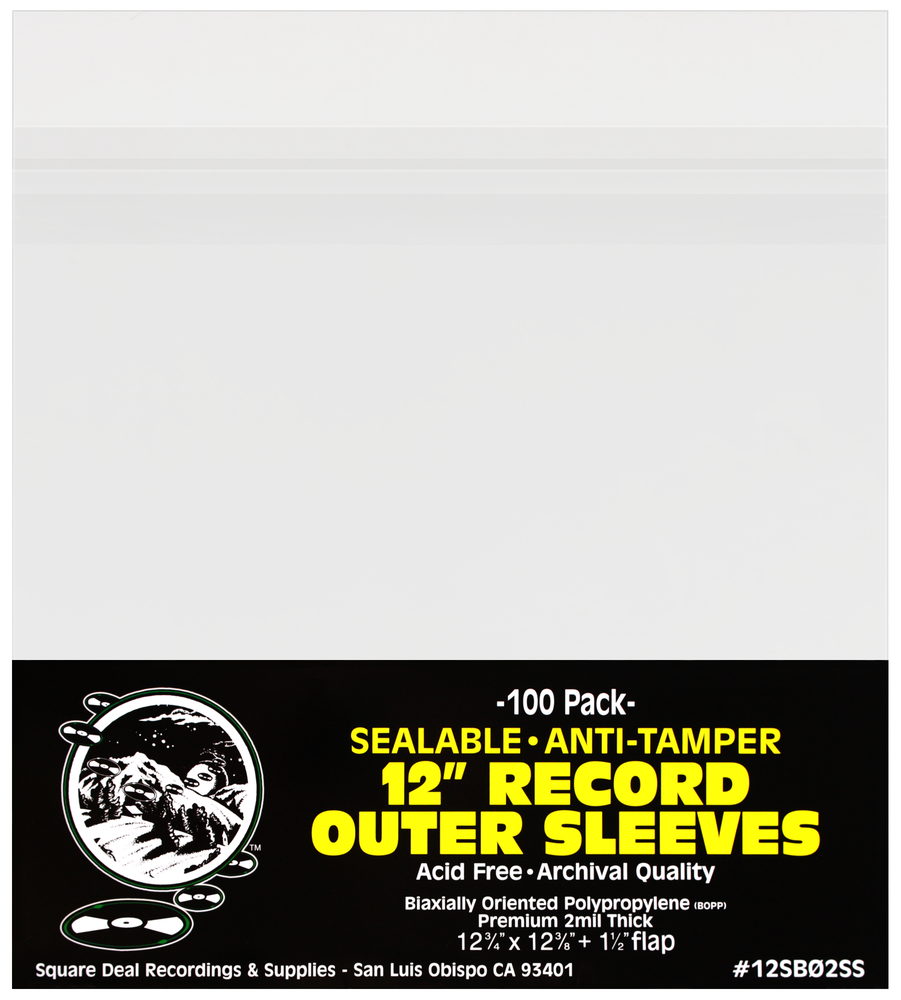 ![]() | 12" Sealable Record Outer Sleeves - Polypropylene - 12-3/4" x 12-3/8" + 1-1/2" Flap - Premium 2mil | $0.1075 - $0.19 | 2-12SB02SS |
