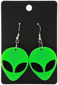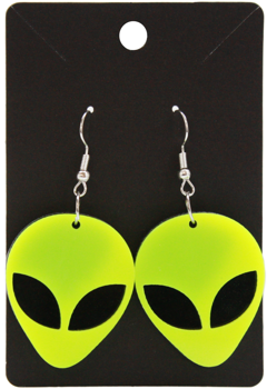| 1.25" x 2.25" Jewelry | ALIENS, MISC. | Green Alien Earrings | $5.98 | 1-EAR-61059 | |