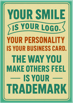 | 2.5" x 3.5" Magnet | Your Personailty Is Your Business Card. The Way You Make Others Feel is your Trademark | $3.49 | 1-MAG-31768 | ||