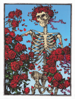 SKELETONS & SKULLS - Dancing Hippie Skeletons with Rose Below and Aiko-Aiko in White Above Them