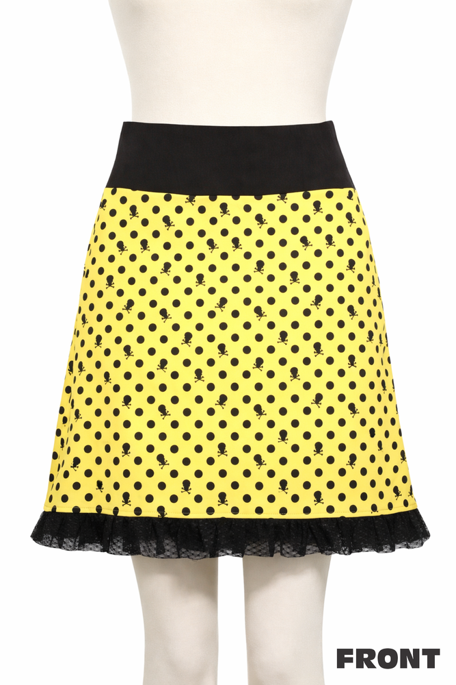 | Skirts | SOURPUSS BRAND | Yellow Pixie Skirt with Black Polka Dot Skull Print - Large MSRP $35.99 | $16.99 | 1-SKL-77264 | |