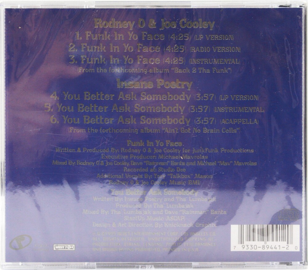| RODNEY O & JOE COOLEY \ INSANE POETRY | Funk In Yo' Face (3 vers.) / You Better Ask Somebody (3 vers.) | CD (New) | $3.99 | 6-REAC-89441-2 |