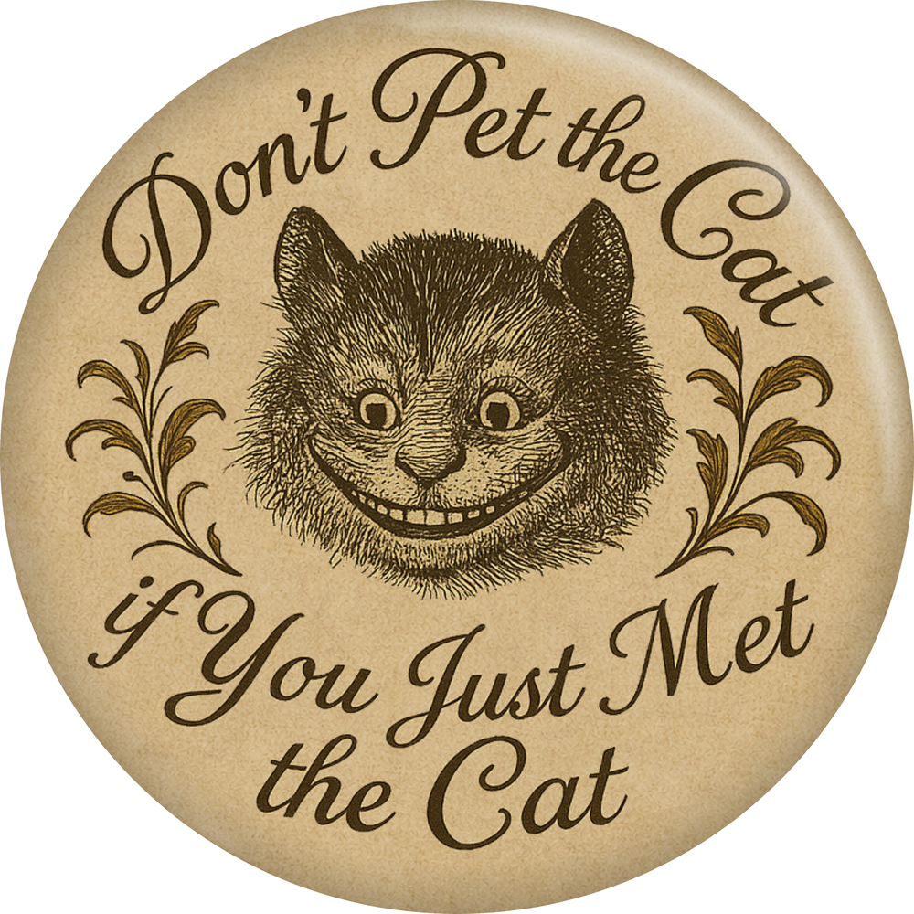 | 1-1/4" Button | ALICE'S ADVENTURES IN WONDERLAND | Don't Pet The Cat If You Just Met The Cat (with Cheshire Cat) | $1.50 | 1-RDB-26047 | |